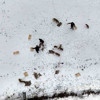 Öte yandan karınlarını doyurmak için bırakılan balıklara koşan hayvanlar havadan görüntülendi.