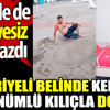 Öte yandan Suriyeli sığınmacının yine sokakta kemerle dolaştığı ve sahilde kuma terbiyesiz yazdığı videoları da bulunuyor.