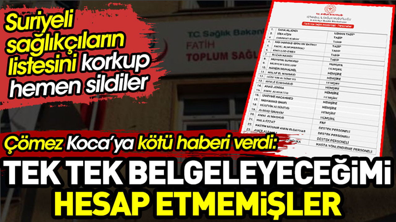 Sosyal medya hesabı üzerinden açıklama yapan Çömez, ‘‘Dün bir liste açıkladım. Tam 24 tane yabancı. İlan ettim Türkiye’ye: bunların hepsi kaçak yollarla Türkiye’ye girmiş yabancılar. Hiçbirinin güvenlik soruşturması yapılmadı, diplomaları kontrol edilmedi, hiçbiri dil sınavına ve medikal sınavlara girmedi. Tek tek isimlerini yayınladım. Bütün bu isimler listeden çıkarıldı. Ben bu güruhu iyi tanıdığım için bütün bu personelin ve web sitesinin detaylarını aldım’’ dedi.