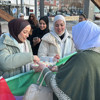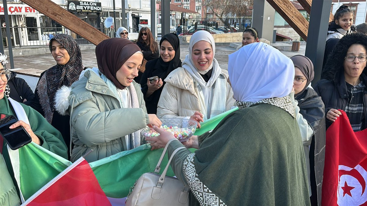 Zafer Meydanı'nda toplanan Suriyeliler, Arapça şarkılar eşliğinde Esad yönetiminin devrilişini sloganlar atıp, kutladı. Toplanan kalabalık daha sonra lokum dağıttı.