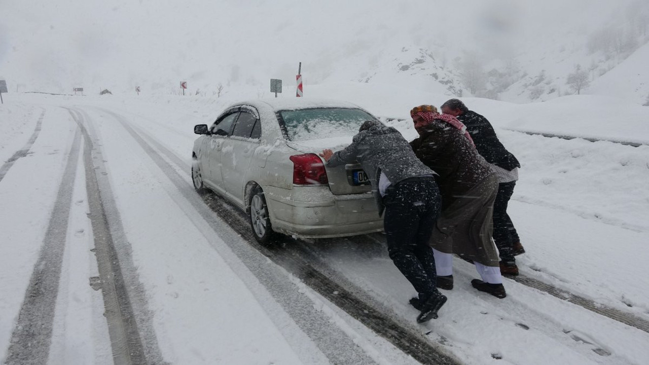 Karayolları ekiplerinin çalışmalar gerçekleştirdiği yolda kış lastiği takmadan yola çıkan birçok sürücü zor anlar yaşadı. Kimi srücü rampalarda araçlarına patinaj çektirerek çıkmaya çalışırken kimi sürücü ise araçlarını ittirdi.