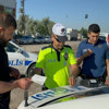 Polisler kamyon sürücüsünün ehliyetinin yetersiz olduğu ve 100 ceza puanının dolması nedeniyle ehliyete el koydu. Farklı maddelerden 48 bin lira ceza kesilen sürücü gözaltına alınarak ifadesi alınmak üzere polis merkezine götürüldü.