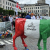Gösteride, çeşitli Avrupa ülkelerinin bayraklarına boyanmış maket inekler kullanıldı.