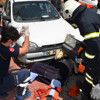 AMBULANSTAN İNDİ, SAVRULAN OTOMOBİL ÇARPTI