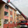 Olay yerine gelen itfaiye ekiplerinin teleskobik merdivenle müdahale ettiği yangın kontrol altına alınarak söndürülürken, çatıda soğutma çalışması yapıldı.