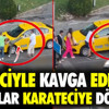 İstanbul Beyoğlu'nda taksiciyle tartışan yabancı uyruklu kadınlar kavga çıkınca tekmeler havada uçuştu. Kadınlar, taksiciye karateci gibi saldırdı. o anlar cep telefonuyla görüntülendi.