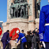 Törenin ardından konuşan İBB Başkanı Ekrem İmamoğlu, “Çok çalışmalıyız. Umudumuz yüksektir. Kaldı ki Türkiye Cumhuriyeti Devleti, her daim aslında hatalarıyla yüzleşebilmiştir. Kendini onarma kabiliyetlerini makul ölçüde gösterebilmiştir. Yüzleşmenin yanı sıra elbette derin hatalar yapılmıştır ama bütün bunları toparlamak ve bu ülkenin bölünmez bütünlüğünü, tam bağımsız Türkiye Cumhuriyeti Devleti'ni demokrasiyle güçlendirilmiş bir yapıyı ülkemize kazandırma sorumluluğuyla biz bugün Taksim Anıtı’nda Ata'mızın huzurundayız.” şeklinde konuştu.