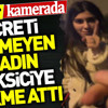 Kadın para ödemeden evinin yakınlarında indiği taksiden yürüyerek evine gitmeye çalıştığı sırada sürücü o anları kaydetmeye başladı. Sürücü kadına "Taksimetreyi öder misin?" diye sordu.