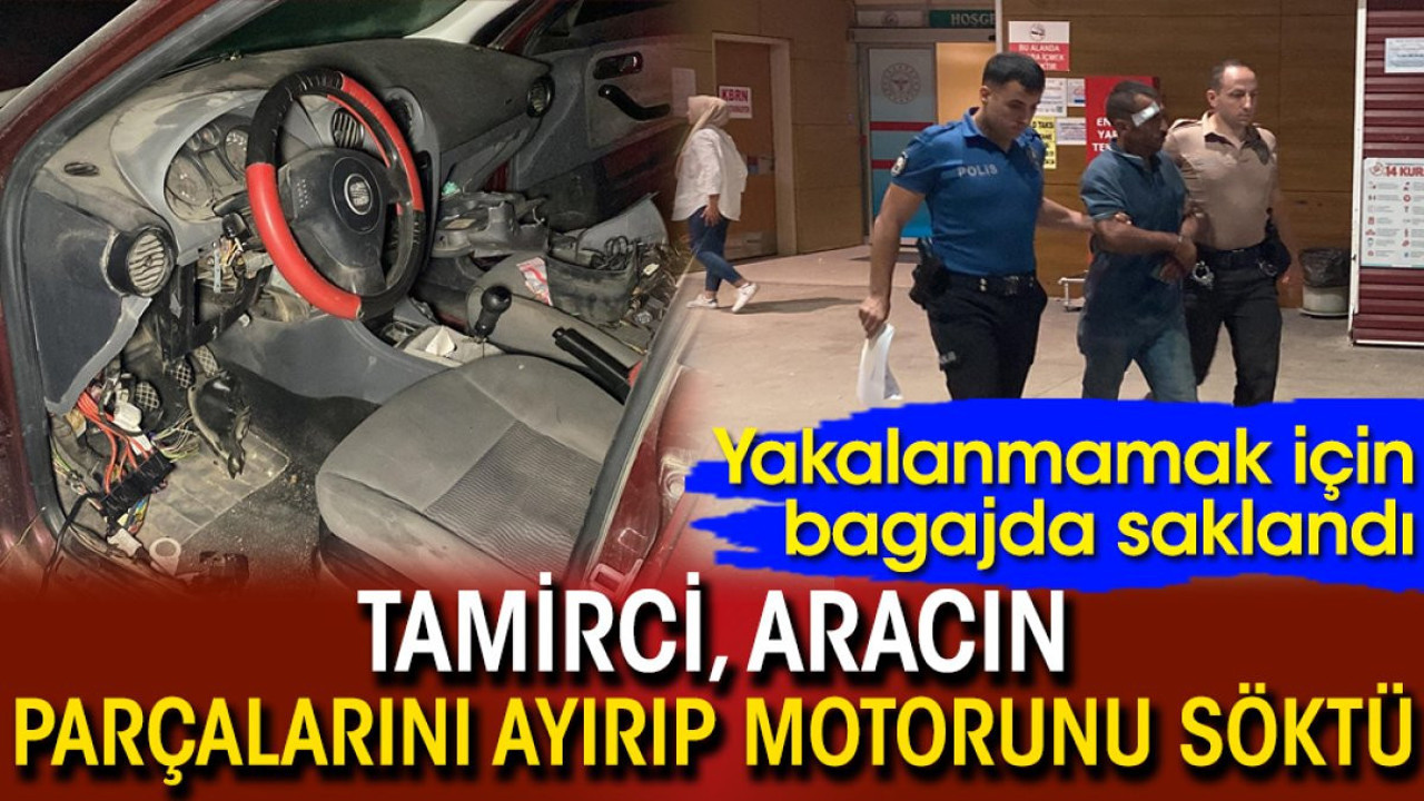 Tamirci Hanefi K., 38 yaşında, İnegöl Mahmudiye Mahallesi'nde park halindeki bir aracın içerisinde saklanırken yakalandı. Aracın sahibi İrfan A., tamir için bıraktığı otomobilinin parçalanmış halini görünce şaşkınlığını gizleyemedi ve tamirci hakkında şikayetçi oldu.