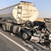Korkutucu kazada tankerin sürücü kabini yerinden fırladı.