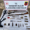 Eskişehir İl Jandarma Komutanlığı Kaçakçılık ve Organize Suçlarla Mücadele Şube Müdürlüğü (KOM) ekiplerince, Tepebaşı ilçesine bağlı Satılmışoğlu mahallesinde ikamet eden bir şahsın tarihi eser kaçakçılığı yaptığı ve evinde tehlikeli madde bulundurduğu bilgisi alındı. KOM ve Çukurhisar Jandarma Karakol Komutanlığı ekiplerince şahsın ilçe merkezi ve Satılmışoğlu Mahallesi’ndeki ikametlerinde arama yapıldı. Aramalarda; 2 adet savunma tipi el bombası, 40 adet dolu uzun namlulu silah fişeği, 2 adet barutsuz uçaksavar fişeği, 1 adet 17 santimetre çapında dolu fişek, 13 adet dolu kısa namlulu silah fişeği, 65 adet boş kovan, 1 adet top güllesi, 5 adet hançer, 1 adet metal dedektörü, 6 adet av tüfeği fişeği, 3 adet av tüfeği, 1 adet mekanizmalı eski tip namlu ele geçirildi.