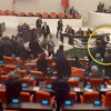 Tansiyon düşmeyince iki grubun burun buruna geldiği görülürken, CHP'li sıralardan AKP'li sıralara kolonya fırlatıldı. TBMM Başkan Vekili Sırrı Süreyya Önder ise oturuma ara verdi.