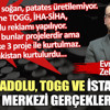TOGG dediğimiz projeye saygımız var, evet iyi niyetlidir, kim inkar edebilir bunu? Lakin dışarıdan gelen parçaları birleştirip yaptığınız işi abartırsanız, Türkiye'nin teknolojide, ekonomide uçtuğunu söylerseniz orada size dur deriz.