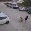 Sokak köpeğine zaman zaman tekme ve tokat atmaya çalışan Erüstün'e, olayı gören bir motokurye yardım etti ve köpeği uzaklaştırdı.