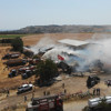 Çiftlikte bulunan 15 bin saman balyası ise alev alev yanarken, yangın kontrol altına alındı. İtfaiye ekipleri tarafından soğutma çalışması başlatılırken, yangın dron ile görüntülendi.