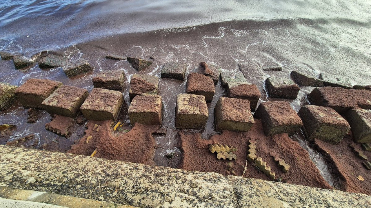 Fırtına ile birlikte sahillere sürüklenen büyük miktardaki kızıl yosunlar, kıyıları kırmızı bir örtüyle kapladı.