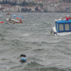 İzmit Körfezi’nde şiddetli fırtına sebebiyle deniz taştı. Dalgaların 2 metreyi aştığı görülürken, 7 tekne de battı.