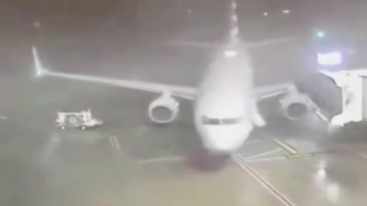 ABD'nin Texas eyaletinde etkili olan olumsuz hava koşulları, Dallas Fort Worth Havalimanı'nda alarm yarattı. American Airlines'a ait park halindeki bir yolcu uçağı, saatte yaklaşık 130 kilometre hızla esen rüzgarın etkisi altında körükten kurtularak döndü.