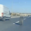 İstanbul'da TEM Otoyolu'nda meydana gelen olayda, bir kamyonetten kopan lastik, kilometrelerce yolculuk yaptı. Lastiğin tehlikeli yolculuğu, bir sürücü tarafından cep telefonu kamerasıyla kaydedildi.