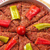 Ardından kimyon, kekik, isot, karabiber ve tuzdan oluşan baharatları da ekleyin. Malzemeleri karıştırarak yoğurun. Yuvarlak tepsiye bir santimetre incelikte olacak şekilde elinizle bastırın ve tüm tepsiyi kaplayın.