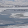 Van'ın Tuşba ve İpekyolu ilçe sınırında yer alan Sıhke Gölü, dondurucu soğukların etkisiyle buzla kaplandı.