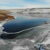 Dondurucu soğukların etkisiyle Kars Barajı'nın yüzeyi buzla kaplandı.