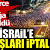 İsrail''de yaşanan siyasi gerginlik, ülkenin uluslararası havalimanı Ben Gurion''a da yansıdı. Hükümetin yargı düzenlemesine tepki olarak başlatılan grev nedeniyle seferler durduruldu ve birçok yolcu mağdur oldu. Türk Hava Yolları ( THY) da bu gelişmelerden etkilendi ve bugün yapılması planlanan İstanbul-Tel Aviv, Tel Aviv-İstanbul, İstanbul-Tel Aviv, Tel Aviv-İstanbul, Sabiha Gökçen-Tel Aviv ve Tel Aviv-Sabiha Gökçen seferleri iptal edildi.
