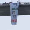Türkiye İşçi Partisi’nin sosyal medya hesabından paylaşılan görüntüde, TİP’lilerin 15 Temmuz Şehitler Köprüsü’nde pankart açtıkları, ardından gelen polislerin pankartı kaldırmaya çalıştığı esnada TİP Genel Başkanı Erkan Baş, İstanbul Milletvekilleri Ahmet Şık ile Sera Kadıgil''in engel olmaya çalıştığı görünüyor.