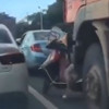 Odatv'nin haberine göre, akıllara durgunluk veren kaza yurt dışında yaşandı. Yoğun trafikte aralardan geçerek ilerlemeye çalışan bir motosiklet sürücüsü bir TIR'ın önüne geldi.