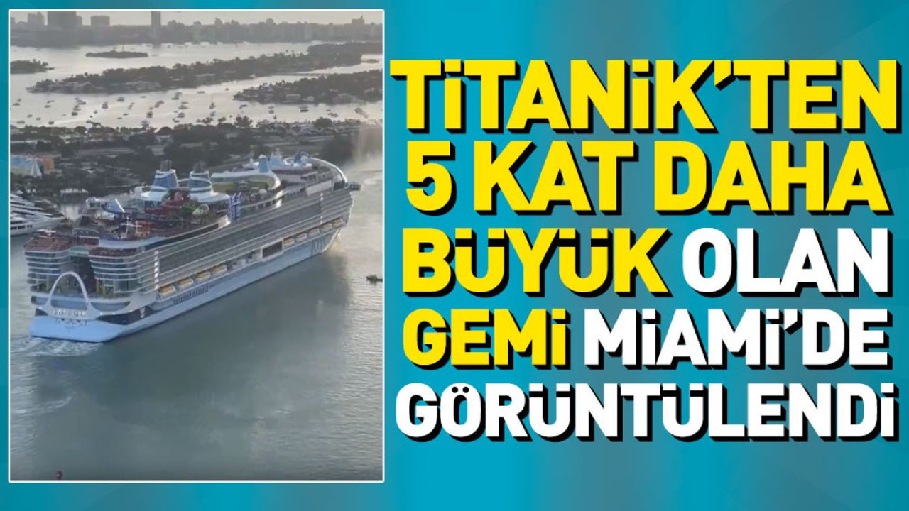Miami’de havadan görüntülenen gemi Titanik’ten 5 kat daha büyük ve 5 bin 600 yolcu kapasitesine sahip. Gemide 2 bin 350 mürettebat görev yaparken, yolcular için de 2 bin 800’den fazla kabin bulunuyor. 365 metre uzunluğun da ve 250 bin 800 ton ağırlığındaki geminin 20 adet güvertesi bulunuyor.