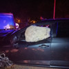 Çarpmanın etkisiyle fırlayan kaya parçası otomobilin sürücü tarafındaki cama saplandı. Kazada sürücü Ömer Türk ve eşi Rukiye Türk (49), yaralandı.