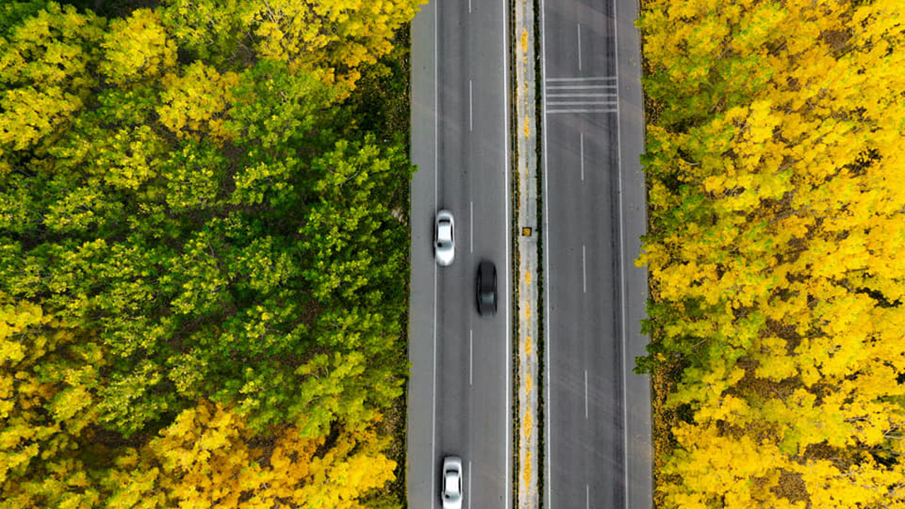 Tokat'ın Turhal ilçesinden geçen şehirlerarası yolun her iki tarafında bulunan kavak ağaçlarısonbaharla birlikte oluşturduğu manzara havadan görüntülendi.