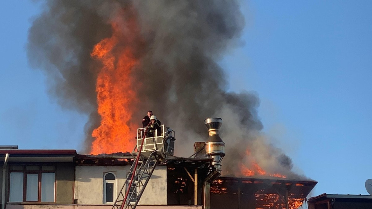 Çatıdan duman çıktığını gören vatandaşlar durumu 112 acil durum çağrı merkezine bildirdi. İhbar sonrası olay yerine itfaiye, sağlık ve polis ekipleri gönderildi. Alevler kısa sürede bacayı sardı. Yangın dron ile havadan görüntülendi.