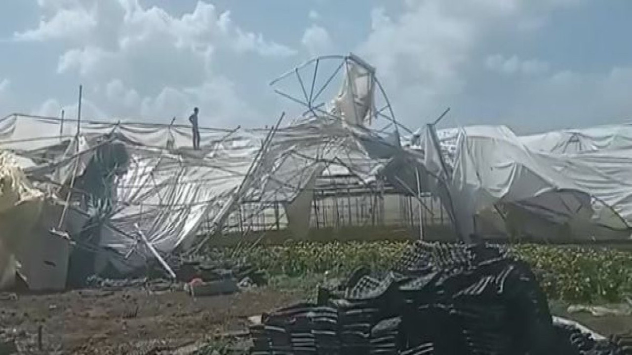 İlhan Çınar’a ait çiçek serası, fırtınadan en çok etkilenen yerlerin başında yer alıyor. Serada bulunan yaklaşık 600 bin çiçek, zarar gördü.