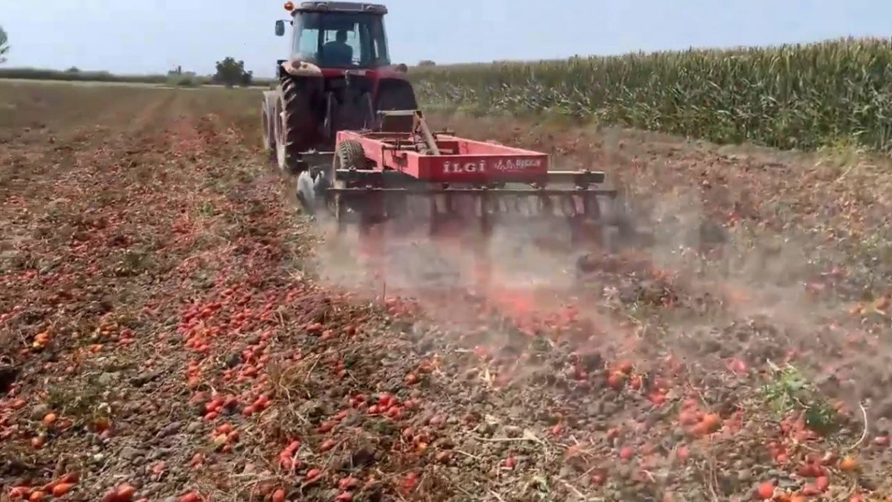 Çiftçi Sinan Çiftçi, "Salçalık domates fiyatı, toplama maliyetinin altında kaldığı için tarlayı sürmek zorunda kaldık" sözlerini kullandı.