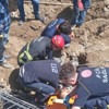 Olay yerine çok sayıda ekip geldi. Yaralı işçi, itfaiye ekipleri tarafından kurtarılarak hastaneye götürüldü.