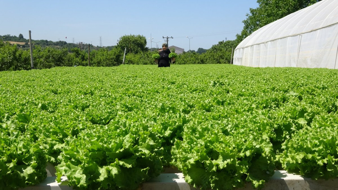 Yaklaşık bir dönüm üzerinde çalışmaları olduğuna değinen Kartal, “Önce açık alanda başladık. Üretimimizi 12 aya ilerletmek istediğimiz için yarı kapalı, yarı açık alanda devam ediyoruz. Altı ay açık, altı ay kapalı olarak sistemimiz çalışıyor. Salatalık yetiştiriciliğimizde aylık 1.5-2 ton civarında bir verim alıyoruz. Marulda da 30 günde bir hasadımız var. Salatalık da toprağa göre çok hızlı bir gelişim sağladık 26’ncı gün hasata başladık. Toprakta bu 60-70 güne varabiliyordu. Marulda da aynı şekilde 45 ile 60 günde hasat olurken, biz 30 günde hasatımızı yapıyoruz. Birim alandan çokça ve kaliteli sağlıklı ürünler elde ediyoruz. Kadın çiftçi olarak çevreme etkisi oldu. Olumlu tepkiler alıyorum ve herkese öneriyorum. Kesinlikle kendilerine inansınlar, inanmak başarının yarısıdır. Umutlarını ve inançlarını hiçbir zaman kaybetmesinler” diye konuştu.