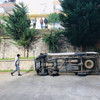 Ortahisar ilçesine bağlı Mısırlı Mahallesi İpekyolu Caddesi''nde seyreden 61 BT 696 plakalı kamyonet, kimliği öğrenilemeyen sürücünün direksiyon hakimiyetini kaybetmesi sonucu yüksekten sitenin bahçesine yuvarlandı.