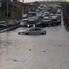Küçükçekmece TEM Otoyolu yan yolda bir anda bastıran yağışla birlikte sürücüler zor anlar yaşadı. Yol göle dönerken bazı araçlar su birikintilerini geçemedi. Mahsur kalan Berat ve Sercan Coşkun araçlarını iterek sudan kurtardı.