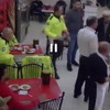 İlk yardım eğitimi aldığı öğrenilen polisin Heimlich manevrası uyguladığı anlar, lokantanın güvenlik kamerasına yansıdı. (DHA)