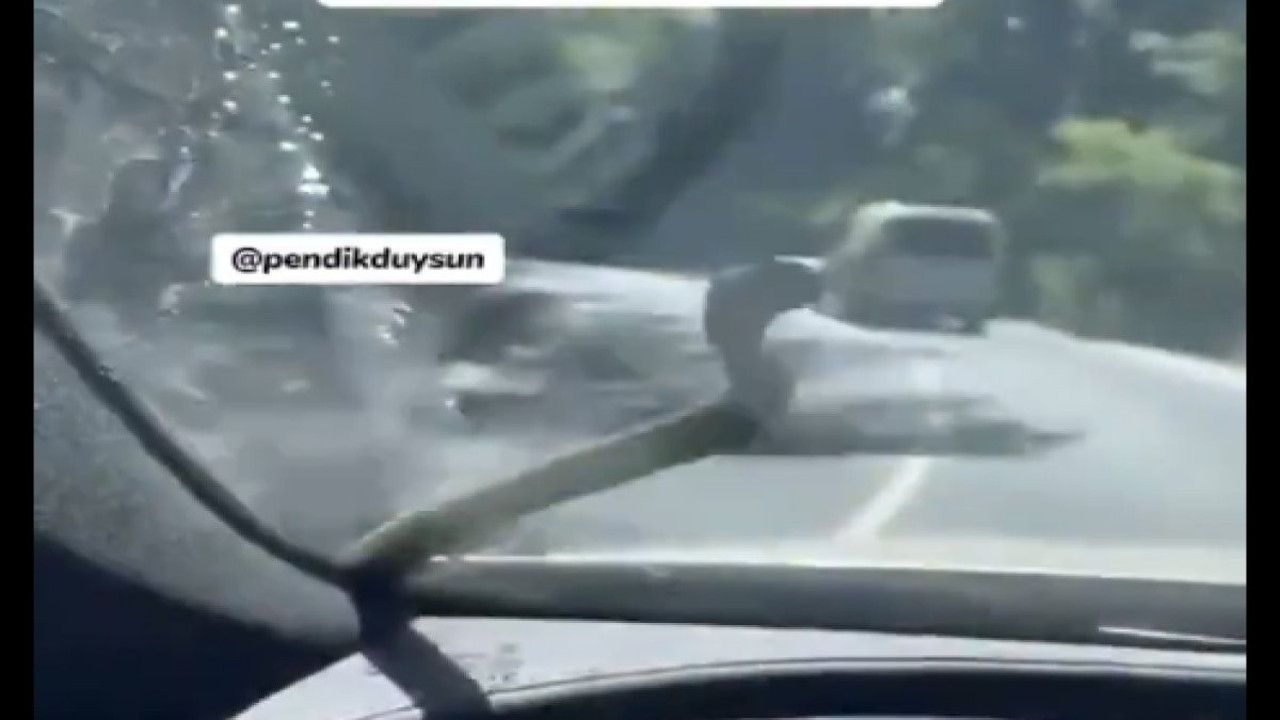 Görüntülerde, otomobilin camına bir anda düşen yılanın sürücüyü nasıl şaşkınlığa uğrattığı açıkça görülüyor. Kadın sürücünün bu ani duruma verdiği tepki ve yılanın camda süzülmesi, izleyenlerin dikkatini çekti.