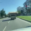 Çatı malzemeleri yüklü kamyonet, 3 şeritli yolun yarısını kapatarak trafiği tehlikeye düşürdü.
