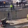 Çubuk ilçesi Cumhuriyet Caddesi’nde sürücüsünün direksiyon hakimiyetini kaybetmesi sonucu kontrolden çıkan traktör yol kenarındaki duvardan devrilerek çaya düştü.