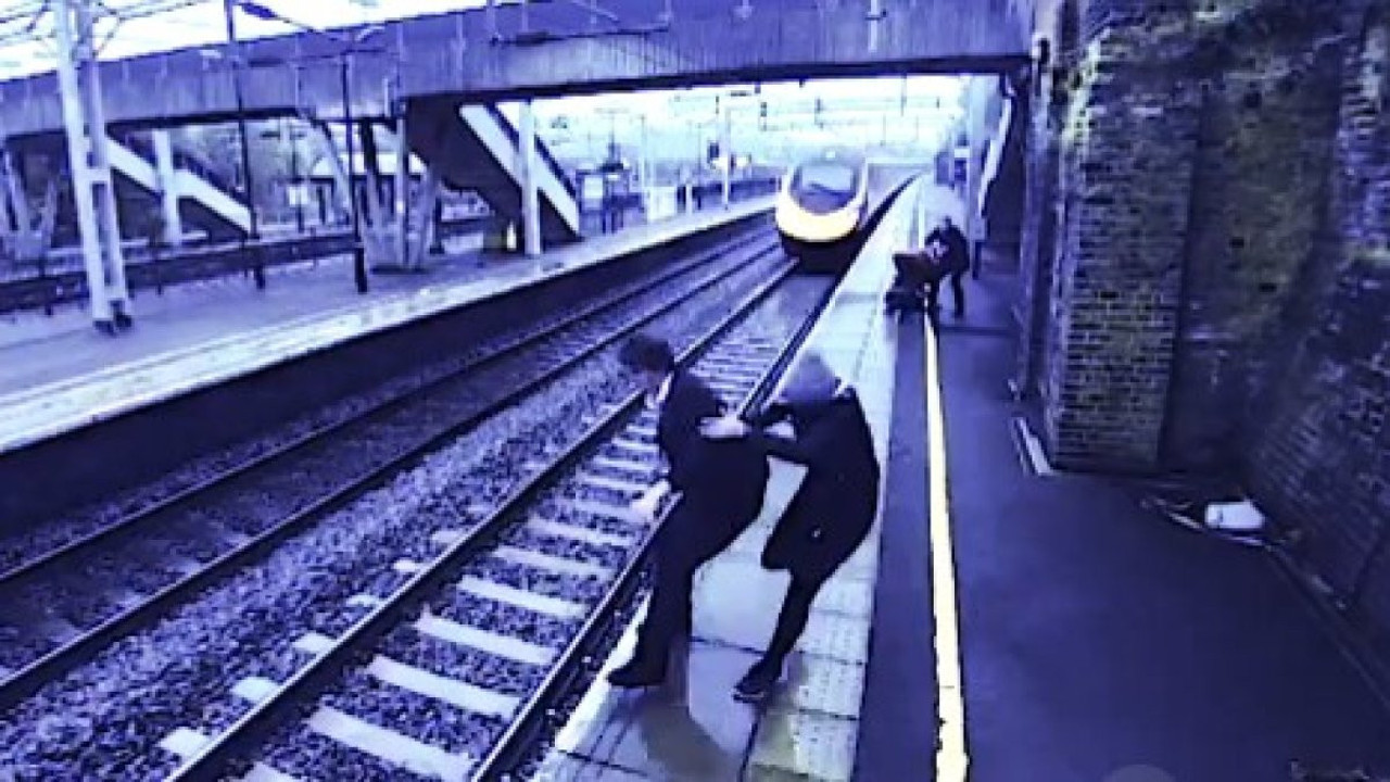 Görüntülerde, adamın ilk başta telefonla konuşurken sinirlenip çantasını duvara attığı görülüyor. Onun bu halini gören kadın, bir şeylerin ters gittiğini anladığı için adama yanaşmaya çalışıyor. Bu sırada trenin gelmesiyle kendini rayların üzerine atmak isteyen adam, kadının cesur hamlesiyle kurtuluyor.