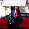 Beyaz Saray'da park halindeki bir filodan kırmızı bir Tesla Model S seçen Trump, aracın içine binerek kameralara poz verdi.
