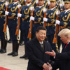 Trump'ın Ulusal Halk Kongresi binası olan Büyük Halk Salonu'nu ziyareti sırasında arkasından nükleer silah kumanda çantasını taşıyan askeri yetkili durduruldu.
