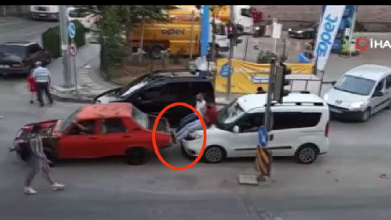 Aktarılan bilgilere göre Polatlı ilçesi Cumhuriyet Mahallesi İnönü Caddesi'nde aracı bozulan bir vatandaş arkadaşlarını arayarak yardıma gelmesini istedi. Yardıma gelen şahıs ve aracın sahibi bozulan aracın arkasına diğer aracı yanaştırdıktan sonra kaputa oturarak itmeye başladı. Tehlikeli anlar başka bir vatandaşın cep telefonu kamerasına yansıdı.