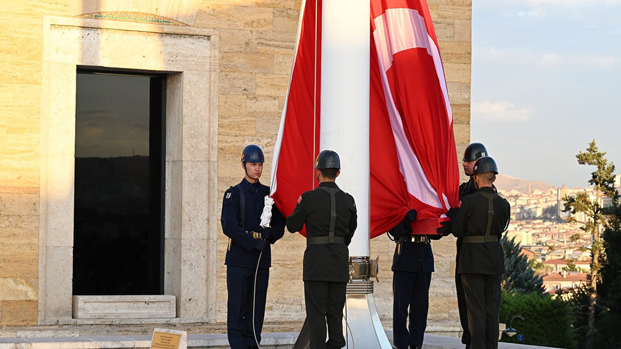 Ulu Önder Atatürk'ün ebedi istirahatgahı Anıtkabir'de dalgalanan bayrak için yıllardır gönderden indirilmeden tören düzenleniyor.