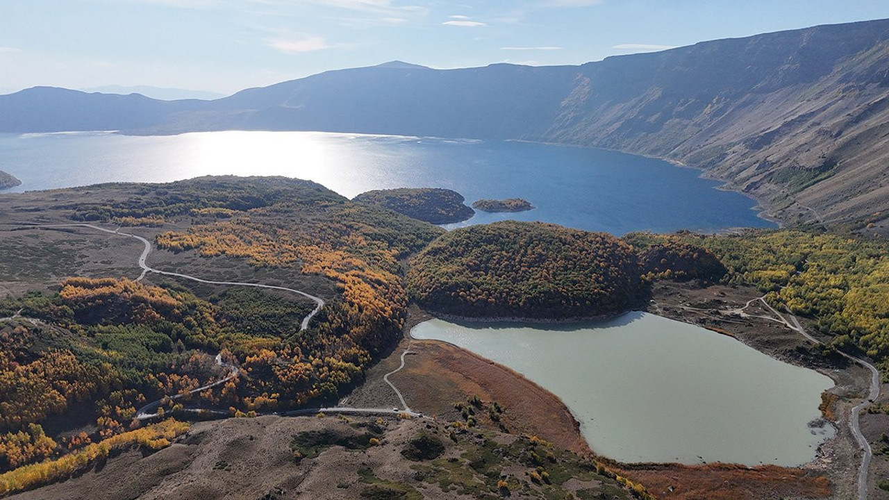 Van Gölü Havzası'nda, Bitlis'in sınırlarında yer alan ve Avrupalı Seçkin Destinasyonlar Projesi (EDEN) kapsamında "Mükemmeliyet Ödülü" alan 2 bin 250 rakımlı Nemrut Krater Gölü, sonbahar renklerine büründü.