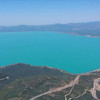 Göl yüzeyindeki turkuaz renk dronla görüntülendi.